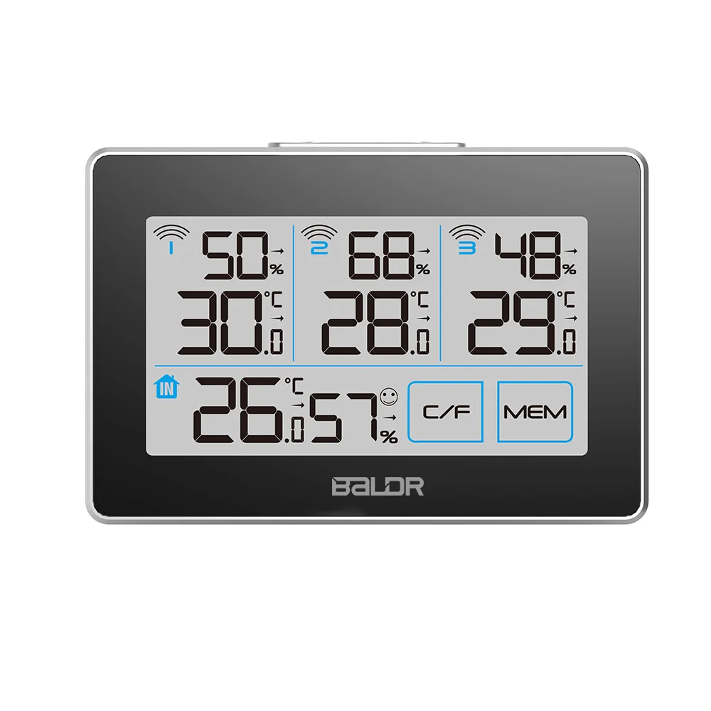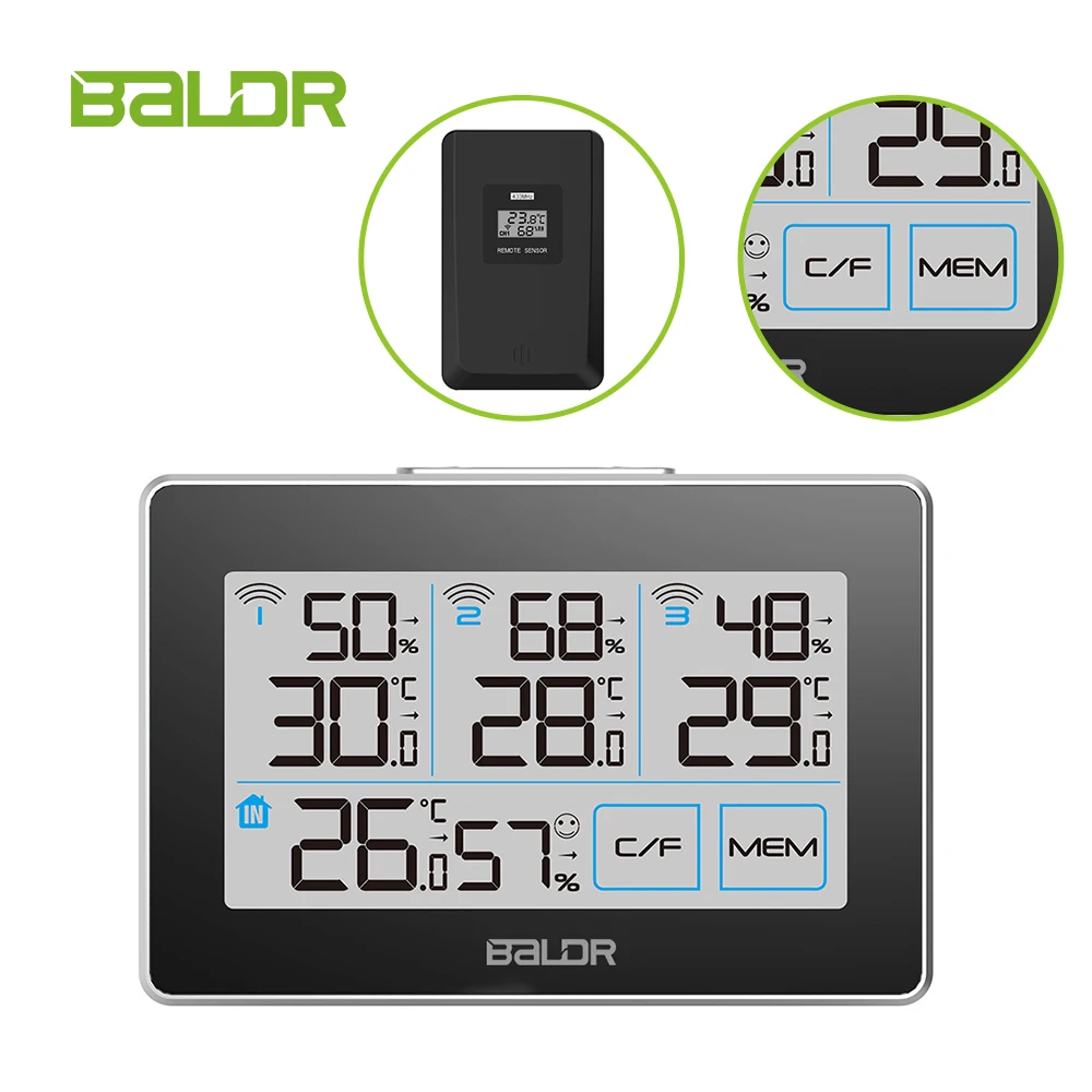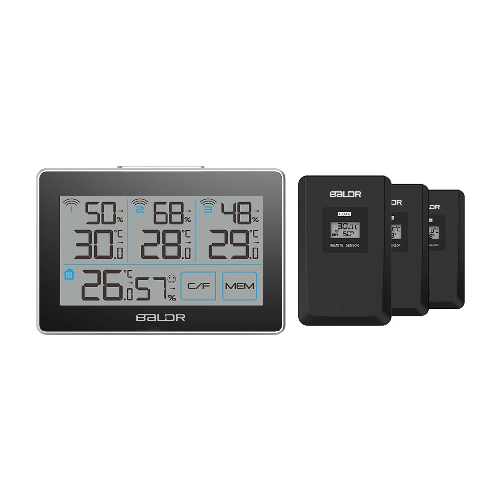 HOT Sale Baldr Touch Indoor Outdoor Weather Station + 3 Forecast Sensor Thermometer Hygrometer Meter Calenda