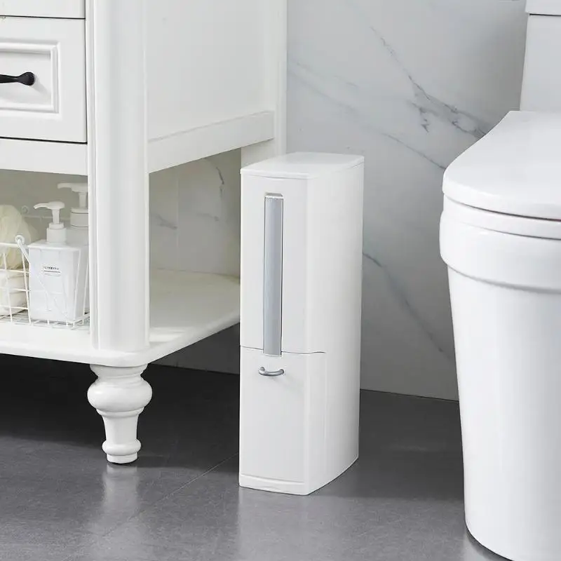 Plastic Bathroom Trash Can with Toilet Brush Waste Dustbin Garbage Bucket