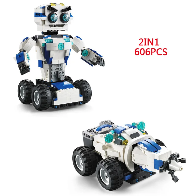TOP Hot smart DADA 2.4Ghz rc transformation Dancing Robot building block 2in1 Drilling vehicle model br